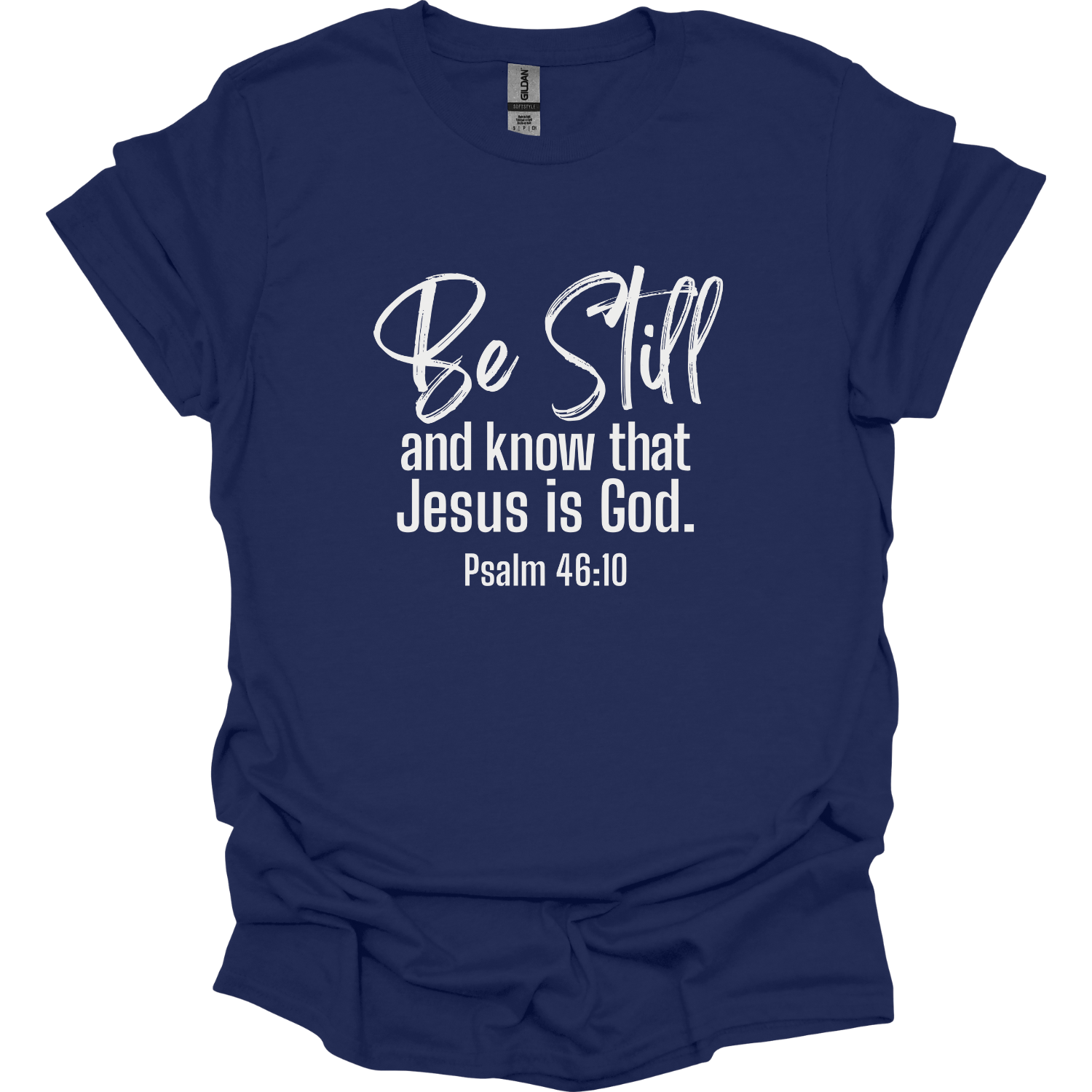 The Be Still and Know that I am God T-shirt references Psalm 46:10.